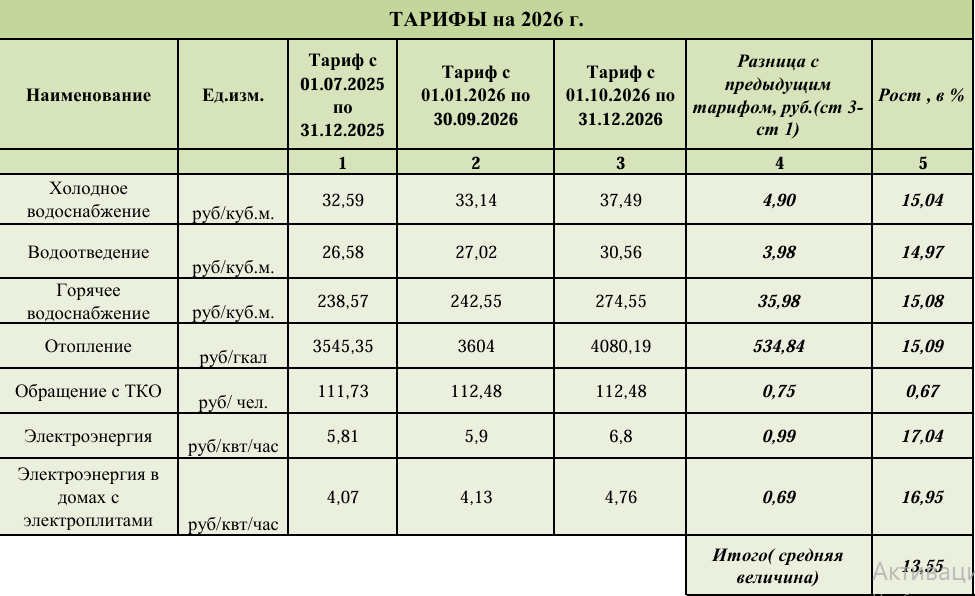 Информируем, что уже с 1 января коммунальные тарифы вырастут почти на 2% в связи с повышением НДС. Второй этап индексации намечен на 1 октября 2026 года. Он окажется куда заметнее — запланировано повышение тарифов в среднем на 18% по стране, тогда как в прошлом году этот показатель составил 12%.